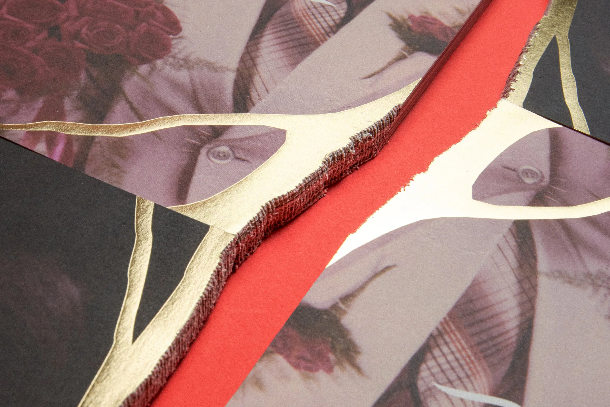 Run your fingers through the paper to discover tactile details and plenty of print surprises: an exposed thread spine, tip-ins, hot stamping, and a special pantone neon palette.